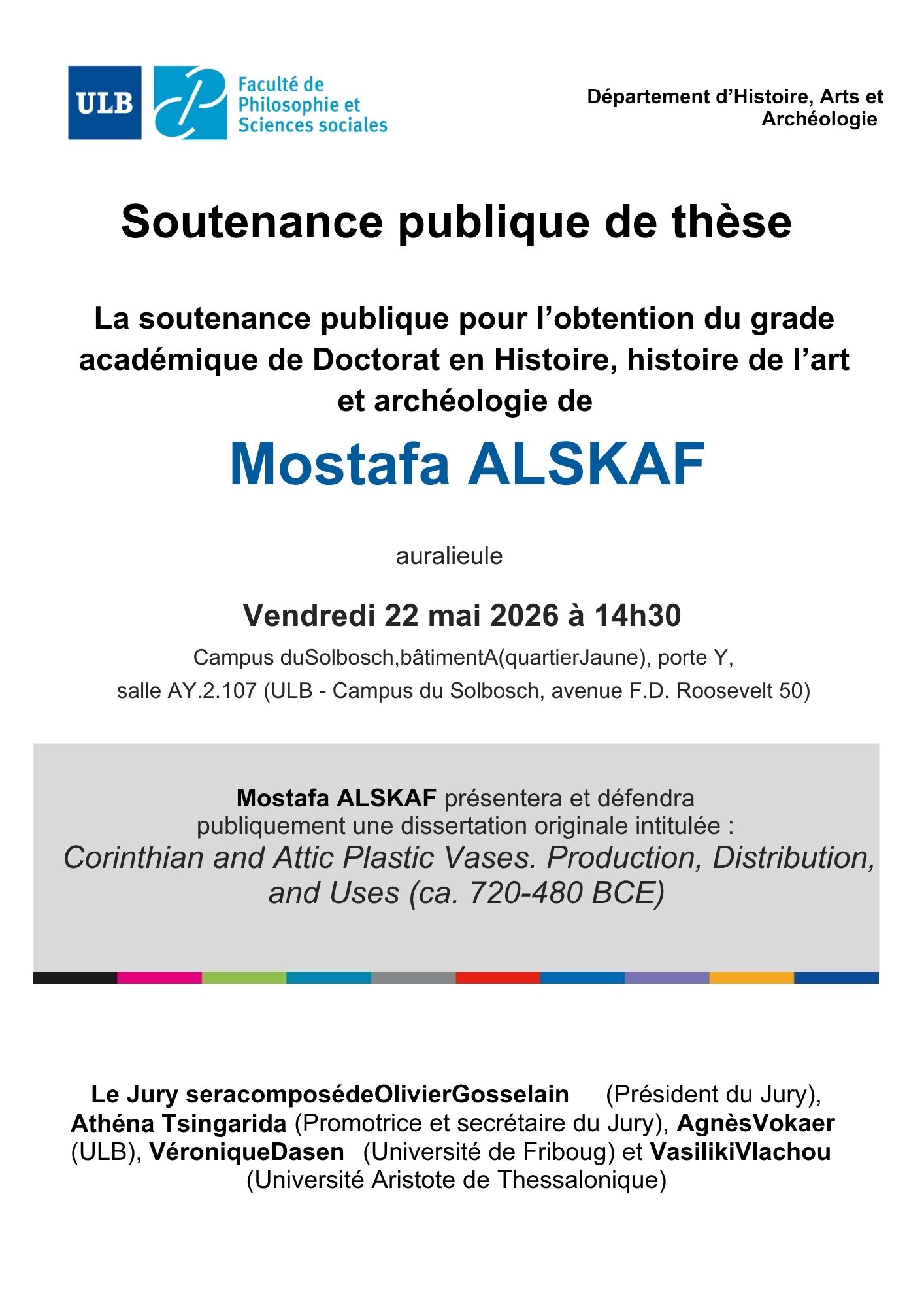 | Mostafa ALSKAF - Faculté de Philosophie et Sciences sociales Soutenance publique en vue de l'obtention du grade académique de Doctorat en Histoire, histoire de l'art et archéologie | |