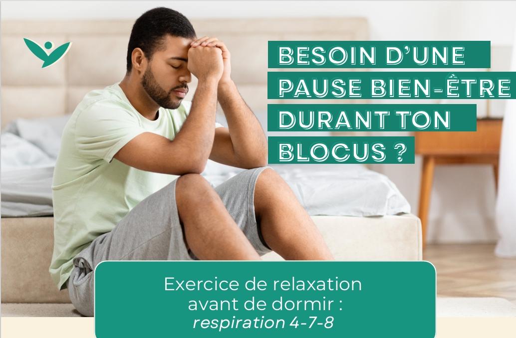 | Respiration 4-7-8 - Pause bien-être en blocus Testez chaque semaine un exercice de gestion du stress pour vous aider à traverser la période des examens. | |