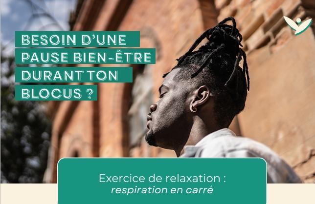 | Respiration en carré - Pause bien-être en blocus Testez chaque semaine un exercice de gestion du stress pour vous aider à traverser la période des examens. | |