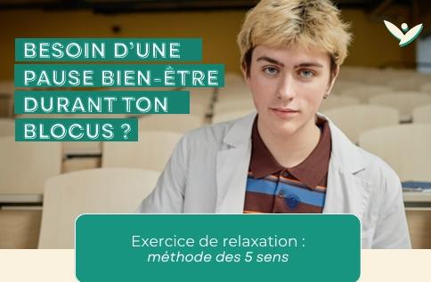 | Méthode des 5 sens - Pause bien-être en blocus Testez chaque semaine un exercice de gestion du stress pour vous aider à traverser la période des examens. | |