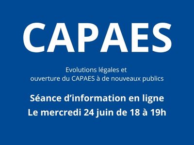 | CAPAES : année académique 2026 - 2027 : sénace d'information Un nouveau décret relatif au CAPAES a été adopté le 1er avril 2026. | |