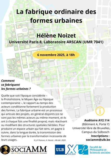 Conférence du SOCIAMM avec Hélène Noizet sur « La fabrique ordinaire des formes humaines » - Jeudi 6 novembre 2025 à 18h00 - Auditoire AY2.114
