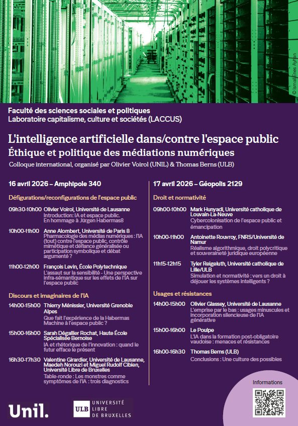 Sous la responsabilité de Thomas Bern (ULB) et Olivier Voirol (UNIL)