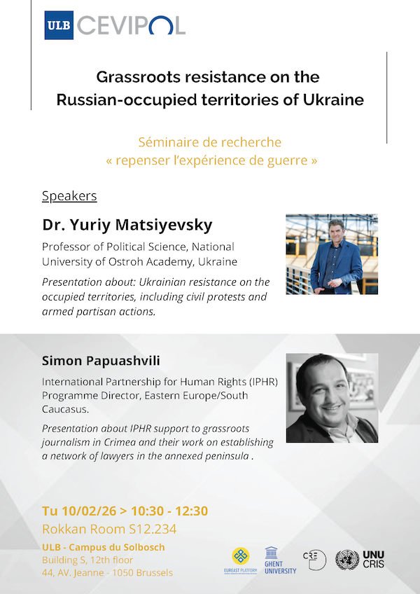 Séminaire de recherche « repenser l’expérience de guerre » avec Yuriy Matsievsky, National University of Ostroh Academy, Ukraine et Simon Papuashvili, International Partnership for Human Rights (IPHR), Programme Director, Eastern Europe/South Caucasus