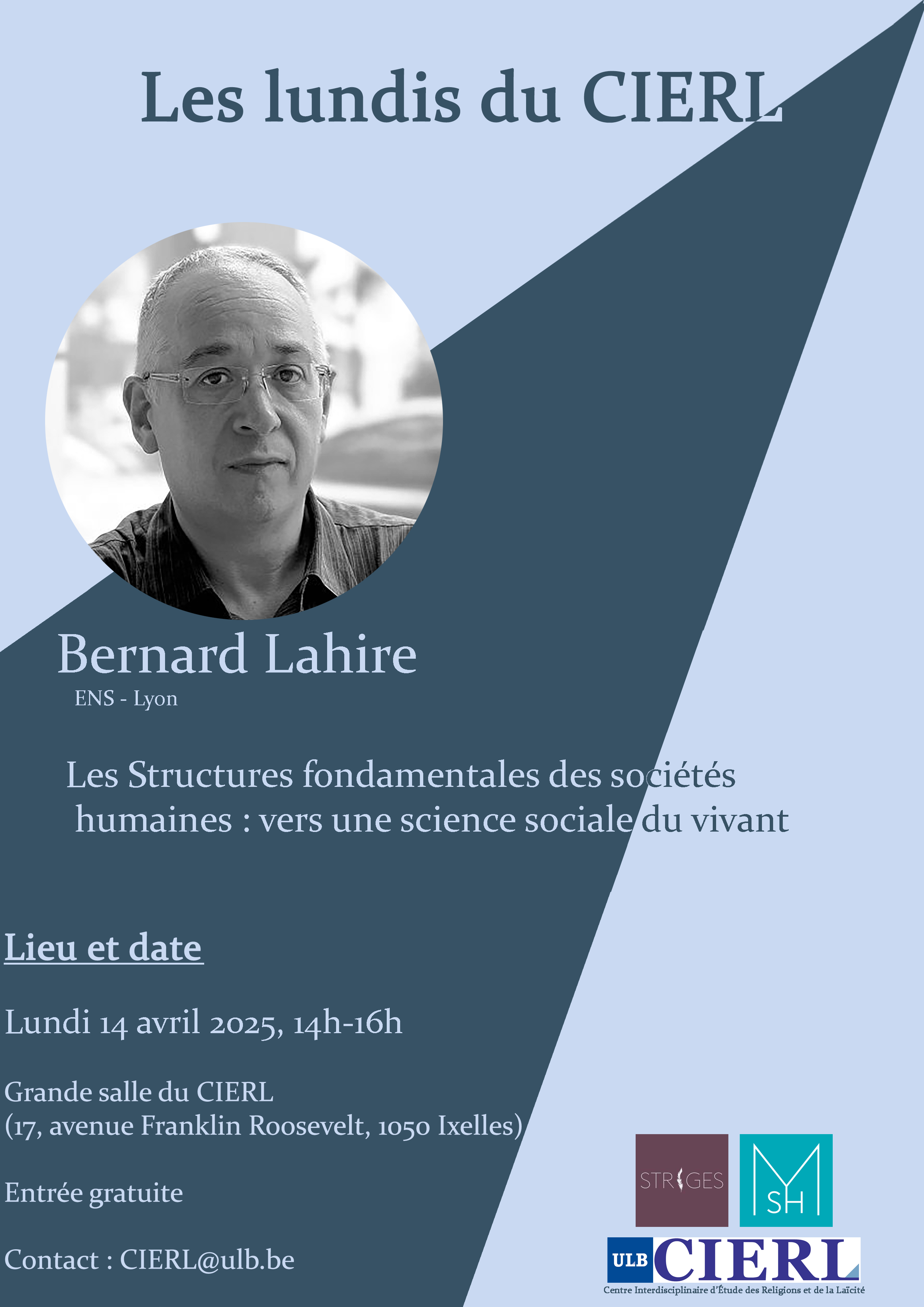 Lundis du CIERL : Bernard Lahire (ENS Lyon), « Les Structures fondamentales des sociétés humaines : vers une science sociale du vivant »