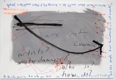 Jeremiah Day, Are Not Cowards, For Willem Arondeus (Performance notation: Ellen de Bruijne Projects, October 12, 2022); Indian ink and acrylic on paper, 33 x 46 cm