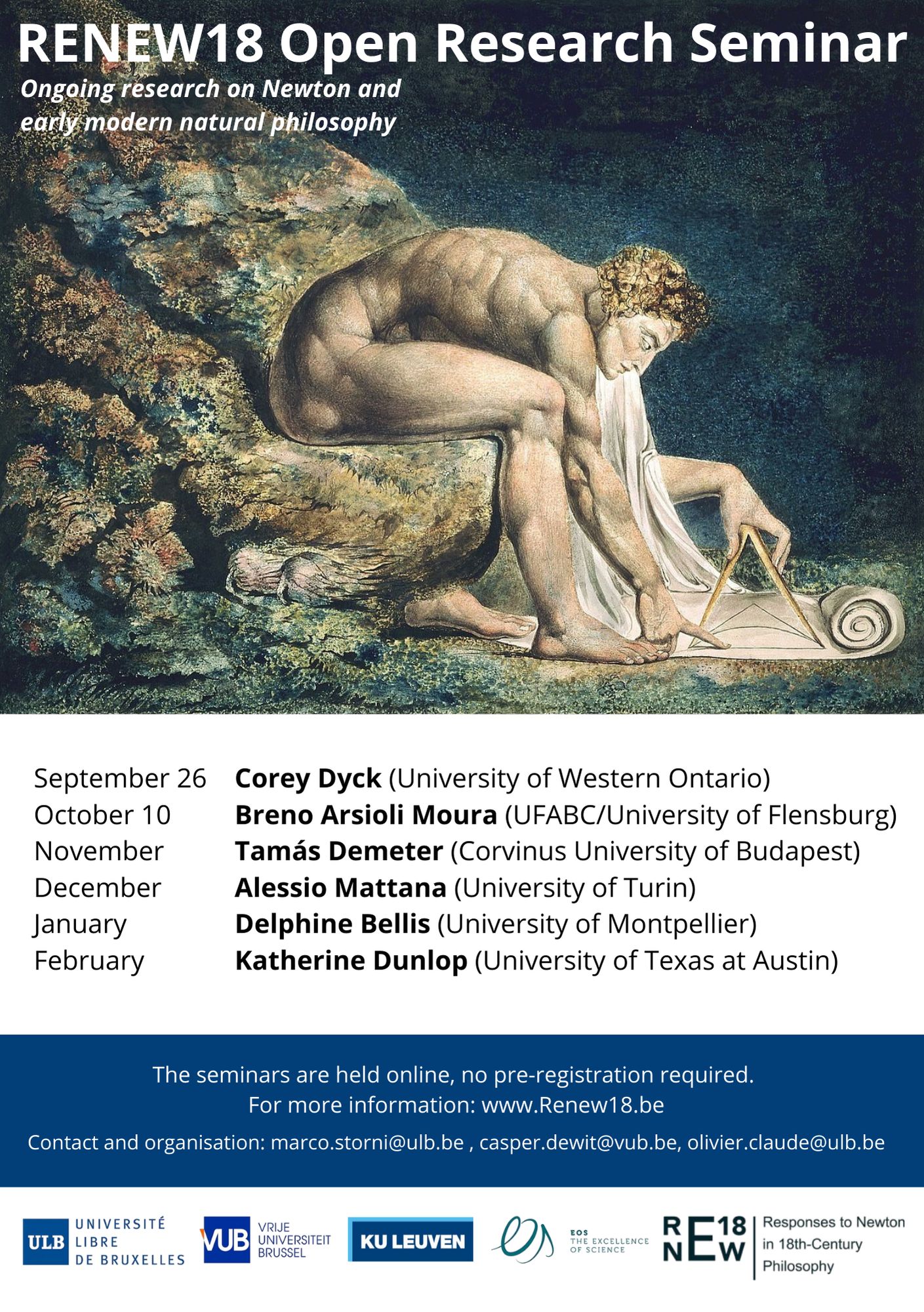 Le séminaire est soutenu par le projet RENEW18-Responses to Newton’s Mathematical-Experimental Paradigm in 18th-Century Philosophy (Excellence of Science (EOS) 2021 – FWO / F.R.S.-FNRS) et est organisé par Marco Storni (ULB), Olivier Claude (ULB) et Casper Dewit (VUB).