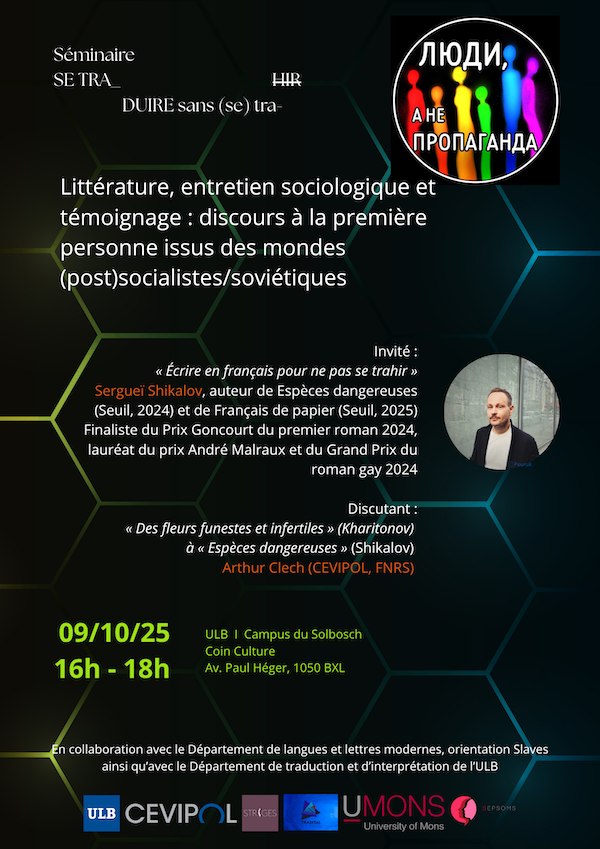 Ce séminaire impliquera, sur le plan institutionnel, le Service des Études de l’Espace Post-Soviétique et des Mondes Slaves (SEPSOMS) de l'Université de Mons, d'autre part, le CEVIPOL, STRIGE, TRADITAL et le département de langues et lettres modernes, orientation Slaves.