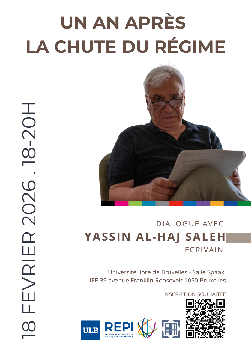 Invité: Yassin al-Haj Saleh, Ecrivain. Avec la participation de Jihane Sfeir, Université libre de Bruxelles (REPI | OMAM) & Hamza Esmili (UNIL | OMAM).